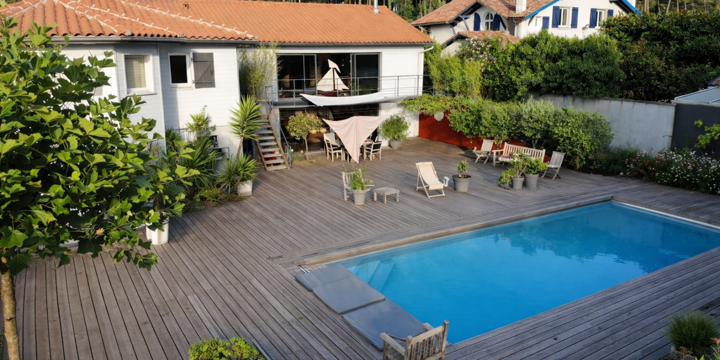 Villa d’exception nichée dans un environnement privilégié, entre la forêt de Chiberta et les plages de la Chambre d’Amour, cette propriété offre un cadre de séjour rare.
